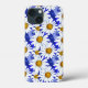 Boîtier de téléphone dans une aquarelle motif de marguerites blanches aux centres jaunes dorés, sur un arrière - plan dans les tons bleu denim