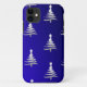 Coques Case-Mate iPhone Arbres de Noël Argent sur Bleu Cobalt