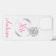 Coque iphone élégant et pratique imprimé avec une bague en diamant argent et parties scintillant avec le mot "Mme" en écriture rose. Ajoutez votre message ou votre nom.