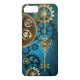 Coques Case-Mate iPhone Arrière - plan turquoise à vapeur avec engrenages