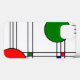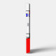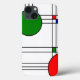 Ce boîtier téléphonique est décoré de vitraux art déco avec des lignes noires et des carrés et cercles rouges, bleus et verts.