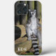 Photographie d'un lémur à queue cerclée se faisant ensoleiller dans la promenade dans l'enceinte du parc Drusillas à East Sussex. Peut personnaliser avec vos initiales en bas à gauche. Le cadeau idéal pour les amoureux des animaux, ce boîtier de téléphone élégant deviendra bientôt un accessoire favori pour montrer au monde combien ils aiment les lémuriens en furie mignons.