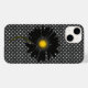 Pois blancs sur couture noire arrière - plan avec marguerite noire brillante.