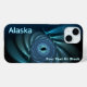 Une image fractale aux tons bleus ressemblant à un groupe tourbillonnant de baleines sous la glace polaire; peut-être des bélugas ou des rorquals de vison qui fréquentent les mâts. Le texte "Alaska" apparaît également. Customisez en ajoutant votre propre texte supplémentaire.