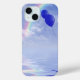 Ballons bleus et arc-en-ciel dans le ciel avec des reflets d'eau.