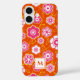 Ce coque iphone audacieusement coloré est prêt pour votre monogramme. Répéter l'impression de fleur folk style années 60 est créé dans une palette brillante de rose chaud, blanc et rouge orange, avec votre monogramme fortement accentué, prêt pour vous à éditer avec un clic de souris. Choisissez votre modèle et votre style dans le menu déroulant des options