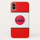 Coque iphone rayé noir rouge blanc. Un texte géant peut être customisé.