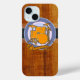 Un superbe design pour les amateurs de batterie. Produit sur le thème de la musique cool. Un tambour à l'intérieur d'un cercle bleu sur un arrière - plan rustique imprimé en bois