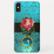 Élégant cool de style vintage floral avec belle rose rose rouge.Motif damassé coloré, Design élégant, classe et unique avec une turquoise aqua bleu 3D pierre de gemme de Bulgan Lumini (c).Facile à customiser avec vos initiales