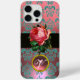 Élégant cool de style vintage floral avec belle rose rose rouge.Motif damassé coloré, Design élégant, classe et unique avec une turquoise aqua bleu 3D pierre de gemme de Bulgan Lumini (c).Facile à customiser avec vos initiales
