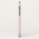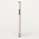 Un étui téléphonique personnalisé avec une belle pièce brune avec des taches blanches sur sa fourrure. Un oiseau mignon assis sur le dos du cerf. Un élégant arrangement floral composé de roses d'aquarelle et de feuilles vert clair sous ses pieds. Une bordure en pois bleu avec un arrière - plan de couleur pêche. Design chéri et adorable.