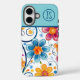 Coques Case-Mate iPhone Bleu Mod, Rose, Fleurs Jaunes Monogrammes