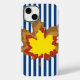 Coques Case-Mate iPhone Bleu rayures automnales avec Feuilles