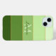 Personnalisez ce coque avec votre nom et votre initiale pour faire une couverture téléphonique amusante qui est la vôtre. Il dispose de cinq bandes de blocs de couleur dégradé de vert, chacune séparée par une bande de parties scintillant dorée.