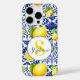 Coques Case-Mate iPhone Blue White Lemon Tile Pattern Monogram Name Citrus