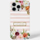 Caisses de téléphone monogrammed personnalisées avec votre nom ou autre texte. Cette conception de chou girly est dotée d'une bordure florale d'aquarelle aux couleurs d'automne rustiques sur un arrière - plan rayé rose vif. Ajoutez votre monogramme dans un simple cadre de feuille d'or. Utilisez les outils de conception pour choisir une couleur arrière - plan, modifier les polices de texte et les couleurs ou ajouter vos propres photos pour créer un design coque d'une nature agréable.