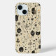 Boîtier téléphonique motif Halloween Whimsical avec visages abstraits, masques crâniens, feuillage, étoiles et symboles mystiques sur le beige. Parfait pour la décoration d'automne et les cadeaux éffrayants uniques.