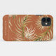 Boho chic feuillage tropical motif avec arrière - plan de couleur orange brune, personnalisée avec le nom, coque iphone.