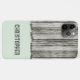 Ce coque iphone coque-Mate dispose d'un espace personnalisable où vous pouvez ajouter votre nom, vos initiales ou tout autre texte. L'arrière - plan présente un faux effet de bois rustique, ce qui en fait une excellente façon de montrer votre style personnel et de faire ressortir votre téléphone. Les couleurs sont gris et vert pâle.