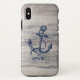 Coques Case-Mate iPhone Bois Rustique Blanc Avec Ancre Bleue Nautique Bate