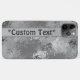 Coque smartphone motif camouflage de style numérique en gris urbain avec champ de texte modifiable. Le motif est composé de symboles d'avertissement de danger biologique qui se chevauchent. Customisez avec une chaîne de lettres, de chiffres ou de symboles de texte. Disponible pour les plus récents modèles iPhone et Galaxy.