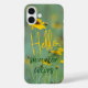 Ce coque présente une photographie fleur sauvage jaune minimaliste avec la typographie jaune "Hello". Personnalisez le message "couleurs estivales" en remplissant les champs de texte avec vos mots, retirez le texte ou cliquez sur personnaliser pour sélectionner le style, la taille et la couleur de la police que vous préférez.