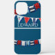 Nautical bunting design with sailboats, anchors, diffusion lettering and stripes in the colors of red, white and blue, typical of nautical and coastal livin and maritime topics. Customize to your liking (even delete or change text)
