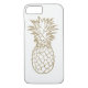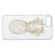 Ce à peine là cas élégant et girly de l'iPhone 7 comporte une silhouette tropicale d'ananas d'or de parties scintillantes de faux sur un arrière - plan blanc. Entièrement personnalisable. La couleur (blanche) d'arrière - plan peut être changée en une autre couleur. Autre dénomme disponible. Une conception originale par @Girl_o_licious.