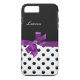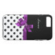 Les cas faits sur commande de smartphone de monogramme avec le motif de pois noir et blanc d'amusement, beau pourpre ont numériquement imprimé l'arc simulé, et la baisse nommée de monogramme que vous pouvez personnaliser avec vos initiales de nom ou de monogramme pour faire vos propres. Conçu pour des dames, ou des filles qui veulent ajouter un certains caractère et style à leur portable.