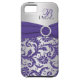 Caisse florale moderne décorée d'un monogramme de l'iPhone 5 de Vibe™ de Coque-Compagnon de damassé de gris pourpre et argenté avec le ruban IMPRIMÉ et la broche IMPRIMÉE de bijou. Customisez-le pour ajouter votre nommé, l'initiale, ou tout autre texte. Si vous avez besoin d'aide, envoyez niteowlstudio@gmail.com.
