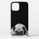 Photo en noir et blanc d'un très adorable petit carlin aux oreilles veloutées et aux yeux bruns âcre. Un grand cadeau pour vous-même ou l'amoureux du carlin dans votre vie.