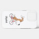 Ce coque iphone présente un dessin animé illustrant l'humoriste Puppy qui monte à vélo. Un cadeau idéal pour tous ceux qui sont amoureux de les chiens et fans de vélo. Vous pouvez facilement personnaliser le nom avec des outils en ligne Zazzle.