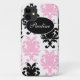 L'iPhone fait sur commande de monogramme 5 cas avec l'arrière - plan rose et noir de damassé protégera votre téléphone dans le style ! Ajoutez vos initiales ou votre nom.