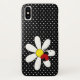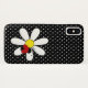 Ce cas de l'iPhone 6 comporte une coccinelle rouge et noire mignonne et à la mode sur une conception de marguerite blanche sur un arrière - plan noir et blanc de point de polka.