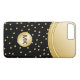 Voici une caisse chique de monogramme de smartphone de dames imprimée dans l'or et le noir avec les éléments numériquement imprimés de conception simulés par or qui ajoutent un contact de classe à votre portable. Créé pour les dames ou les filles comme qui pour mettre leurs lettres de nom sur leurs choses.