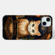 Chatte orange aux cheveux longs dans un style Art nouveau vintage aux accents floraux orange et vert sur un arrière - plan noir. Personnalisable avec votre texte, nom, initiales ou tout ce que vous choisissez.