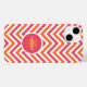 Ce boîtier de téléphone est doté d'un motif zig zag classique simple rose et orange chevron avec une entrée en cercle rose pour personnaliser avec votre nom et votre initiale.