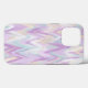 Un chevron abstrait dans une palette violette, turquoise, ivoire et blanche.