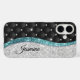 Joli chic et élégant faux argent turquoise turquoise parties scintillant d'aqua et strass bling coque iphone. Belle couverture moderne et cool pour le brancheur tendance et amateur d'art. Ce coque iphone est doté d'un motif tufté noir aux accents de parties scintillant faux argent et bleu turquoise, créant une esthétique glamour et girly. Le look texturé et le brillant argenté ajoutent une touche moderne et tendance, à la fois chic et sophistiquée. Il fait l'idée cadeau parfait pour un doux 16 anniversaire, mariage, douche nuptiale, anniversaires, baby showers ou fêtes de bachelorette, jour des valentines, Noël ou en cadeau en général. VEUILLEZ NOTER : Il s'agit de graphiques imprimés plats - pas de parties scintillant réelle, de bijoux ou de pièces surélevées