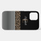Un élégant poster de animal léopard noir et un boîtier monogramme rayé noir et blanc Iphone 12. Elégant et chic ! Ajoutez votre nom et votre initiale. Conçu pour vous par Blackberry Boulevard.
