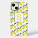 Coque iphone citron moderne avec monogramme et nom. Un motif d'agrumes au citron bien amusant. Facile à changer le monogramme et le nom.
