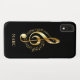 Élégante clef dorée triplée avec des notes sur arrière - plan noir. monogramme facultatif