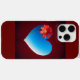 Une image d'art numérique montre un coeur bleu avec une fleur rouge sur un arrière - plan rouge foncé. Le coeur est placé au centre de l'image, avec la fleur placée sur le côté supérieur gauche du coeur. La fleur a des pétales rouges et un centre jaune, et sa tige s'étend le long du côté du coeur. L'arrière - plan est de couleur rouge foncé, ce qui contraste fortement avec le coeur bleu et la fleur rouge. L'éclairage de l'image est doux et diffuse, ce qui crée une atmosphère douce et romantique. Le style général de l'image est simple et élégant, avec un accent mis sur le coeur et la fleur comme sujets principaux.