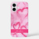 Ce boîtier téléphonique est doté d'une peinture abstraite amusante à l'aquarelle avec des coeurs roses. Il est personnalisé avec votre nom en écriture de script. Artsy, girly et unique.