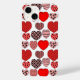 Ce boîtier téléphonique a une conception de Valentine de coeur répétitif avec différents graphismes à l'intérieur sur un champ de blanc.