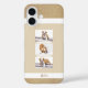 Custom Pet 3 Photo Collage et Nom iPhone 16 Coque. Un étui de téléphone photo personnalisé pour un propriétaire de chien. Design moderne sur un arrière - plan beige avec parties scintillant en faux or. Personnalisez le boîtier téléphonique avec 3 de vos photos d'animaux de compagnie préférées et un nom dans un script tendance. Un cadeau personnalisé parfait pour un propriétaire de chien et un amoureux des animaux.