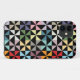 A pattern of geometric pinwheels form a quilt-like tapestry of color. Both moderne et vintage at the Solitime. Versatile and classic.