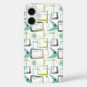 Ajoutez une pop de couleur à votre téléphone avec cette étui rétro funky du milieu du siècle. Le motif est composé de carrés atomiques, d'étoiles et d'un boomerang aux couleurs bleu aqua, jaune, vert avocat et noir.