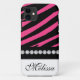 Caisse dure personnalisée audacieuse de zèbre de rayure d'impression de Coque-Compagnon rose et noir de l'iPhone 4. Employez cette conception élégante avec une bande des diamants blancs de faux et de la police de fantaisie de manuscrit pour que votre nom personnalise votre caisse de l'iPhone 4.