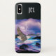 Personnalisez ce coque iphone d'aigle chauve unique "Un d'un genre". Il comprend un aigle à tête blanche majestueux qui survole une rivière éclairée par la lune pendant une tempête de foudre! Design artistique original par l'artiste Kerry Miller.